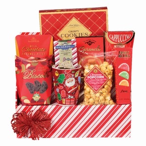 Aunt Gloria’s Sugar Cookies, Milk Choc Caramel Bites, Primrose Caramels, Fruit Jellies, Barista’s Best Hot Cocoa, Ghirardelli Squares Holiday Peppermint Bark, Triple Chocolate Biscotti, Caramel Popcorn, Christmas Mug.